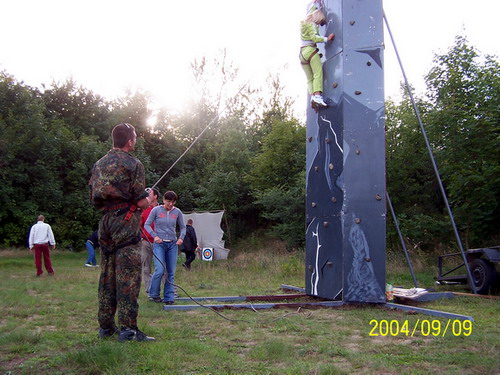 Wspinaczka na takiej ściance jest bardzo bezpieczna gdyż wspinający się jest stale asekurowany przez osobę trzymającą linę, tzn. wędkę.