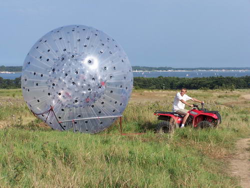 Zorb - duża, zrobiona z PCV kula z jednym otworem wejściowym, wzmocniona specjalnym olinowaniem.